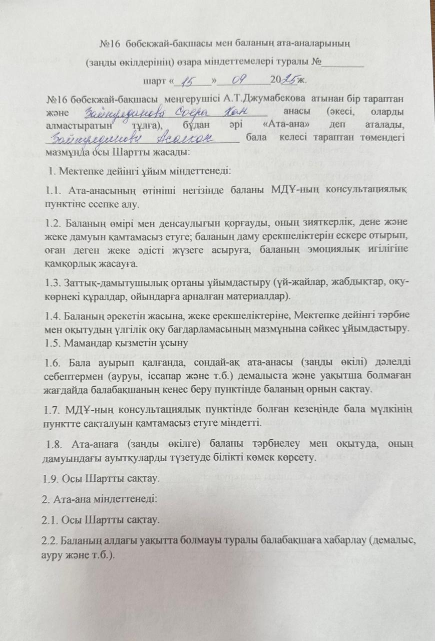 Келісім шарт » №16 балалар бақшасы
